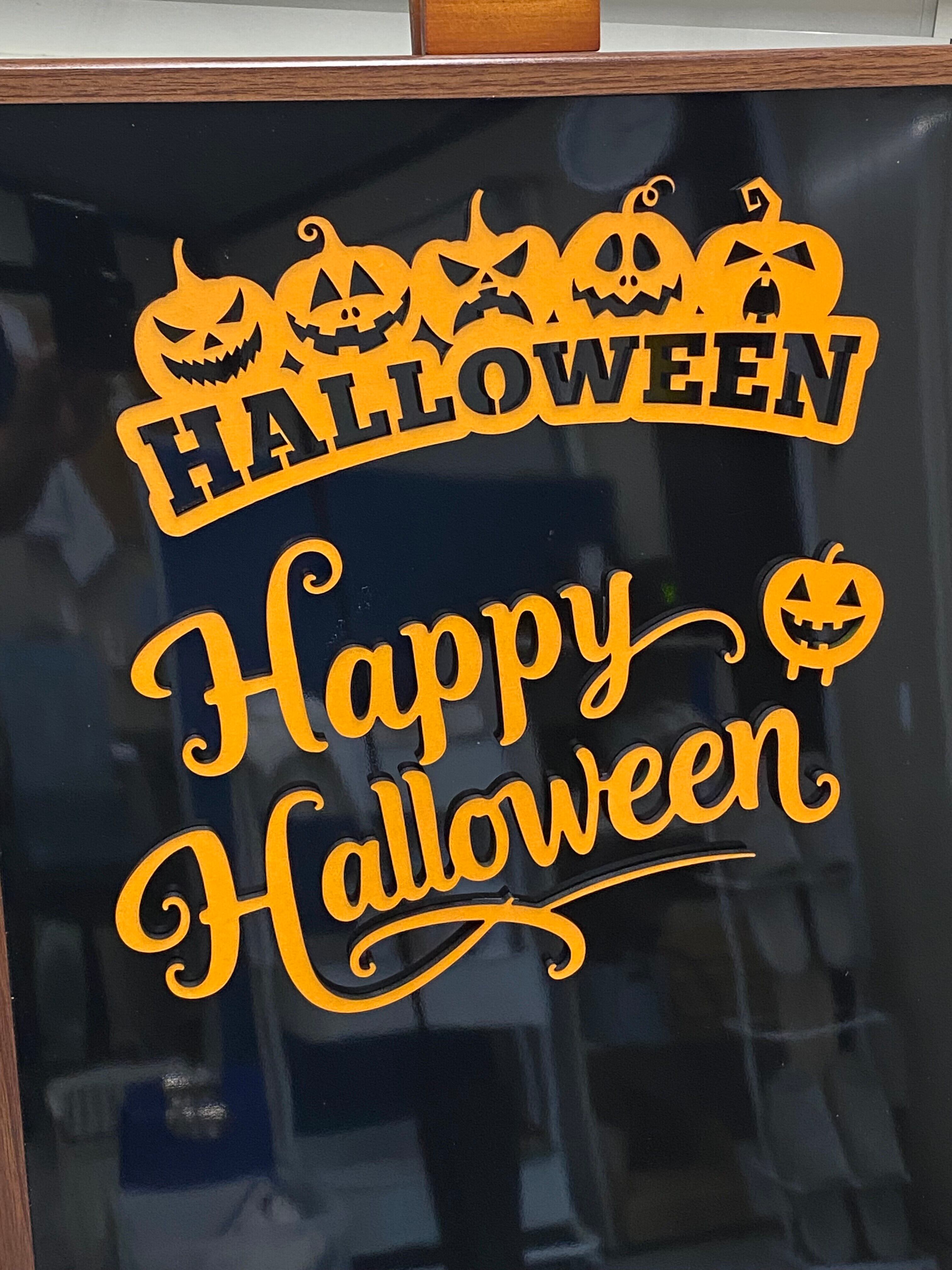 木製の合成板(MDF板)をレーザー加工で切り抜き成形したハロウィン用立体装飾文字板【BePOP】シリーズ品です。